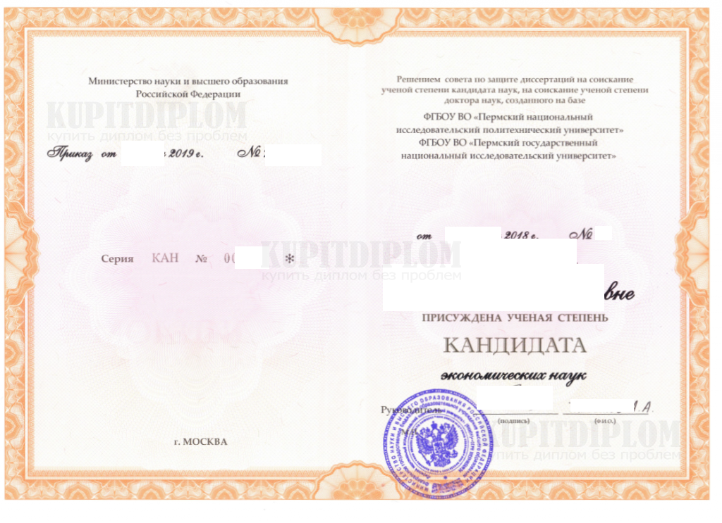 Если в старых дипломах заполнение было от руки, то сейчас все данные в дипломы кандидатов наук полностью впечатываются.